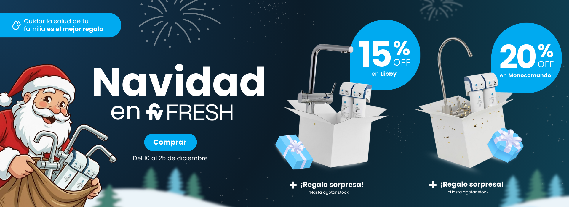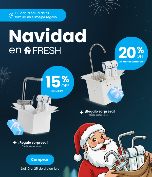 Fresh es un sistema de acondicionamiento del agua de red domiciliaria que cuenta con dos filtros.