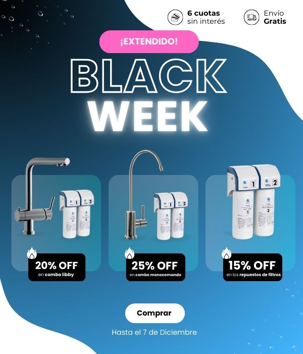 Los filtros están estratégicamente ubicados bajo la mesada y dentro del cuerpo de la grifería que trae el agua de red hay un conducto especial que lleva el agua de los filtros.